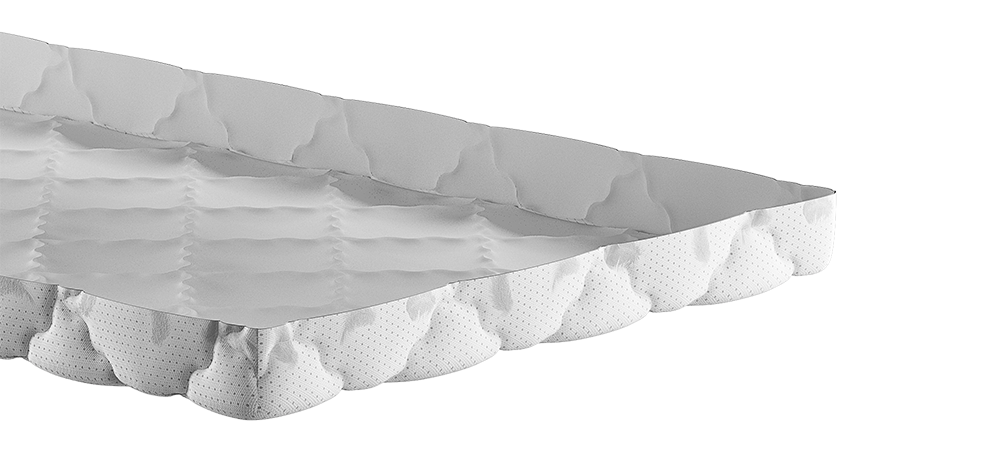 Набивка High-Tech трехмерной сетчатой структуры в матрасе защищает настилочные слои от истирания, продлевает срок службы и усиливает воздухообмен.